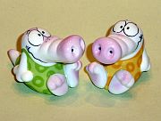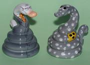 Seit Anfang 2005 bei Goebel: Salz- und Pfefferstreuer in Lizenz von Adam & Ziege. Die Streuer tragen als Bodenstempel die Porzellanmarke TM10, am unteren Rand der Figur die Designer-Signatur